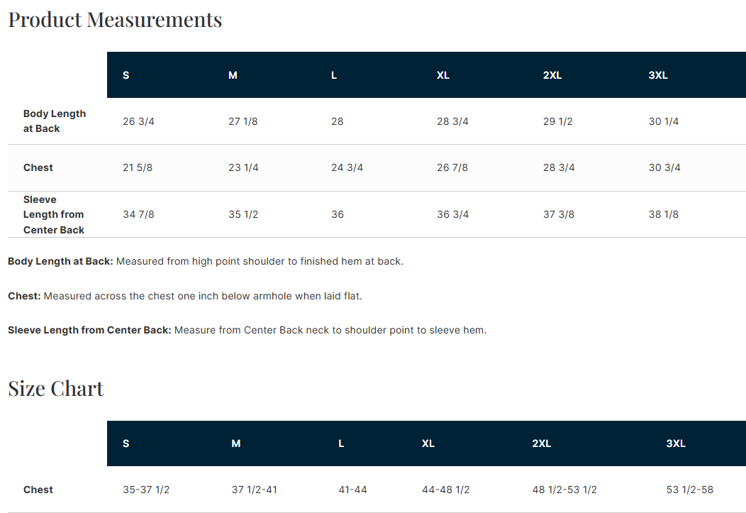 SIZE CHART: