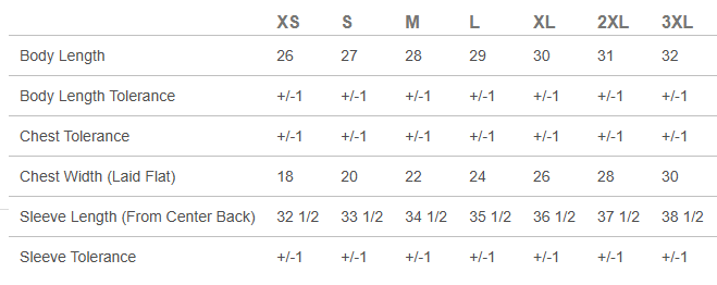 SIZE CHART: